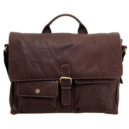 Rugged Leather Messenger Bag by Detour. Dimensions: 41cm x 30 cm x 11cm. Tuck Fasteners on the Flap, 2 Front Pockets Grab Handle and Adjustable Shoulder Strap. Back Zip Pocket, Inside Zip Pocket and Small Zip Pocket on the Side. Detour Check Lining and Detour Dustbag